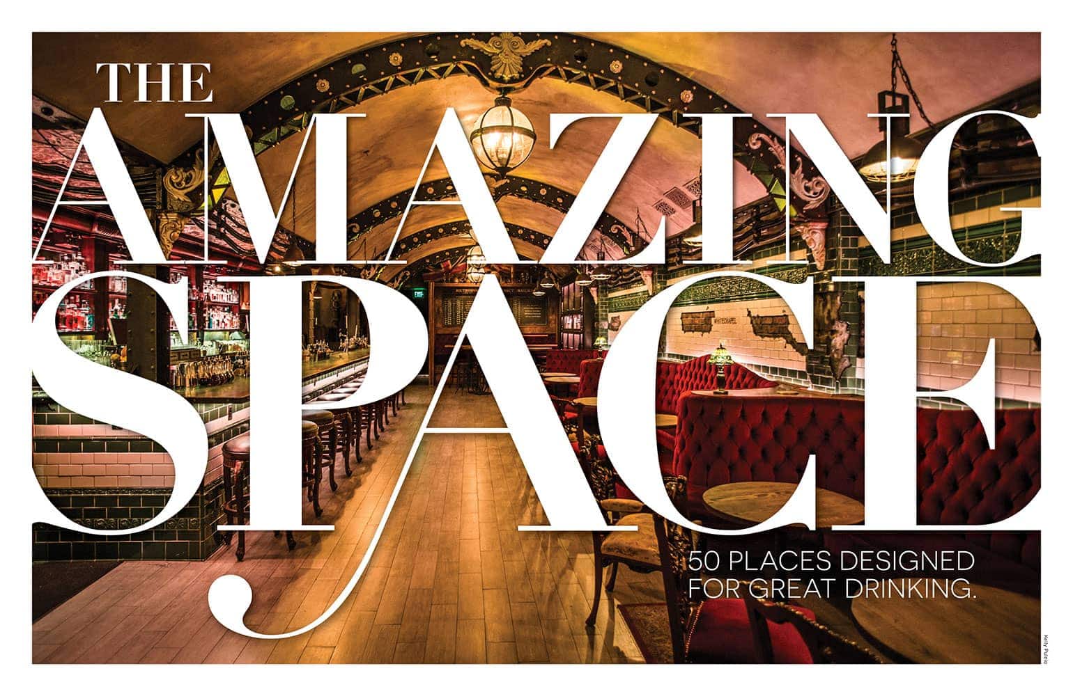 This was the opening spread for the beginning of the Design Issue package (50 places designed for great drinking). I really loved the photo by Kelly Puleio of Whitechapel in San Francisco, (and didn’t mind covering it up with the huge lettering because we ran more photos of that beautiful space later in the feature). I thought for a feature showcasing amazing spaces, go big.