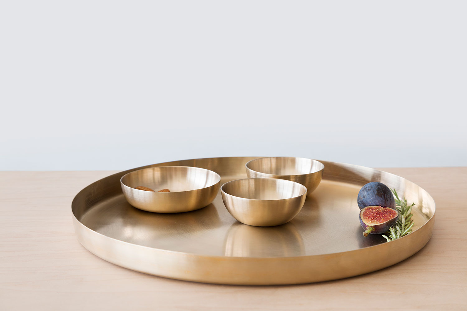 Add chic elegance to cocktail hour with these bronze serving trays handmade in India. Add the matching bowls for the perfect vessel for garnishes or nibbles. $135-$165, the-citizenry.com