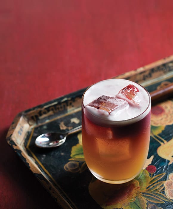 A warming mix of Cognac, chai, orgeat, lemon, and cardamom.