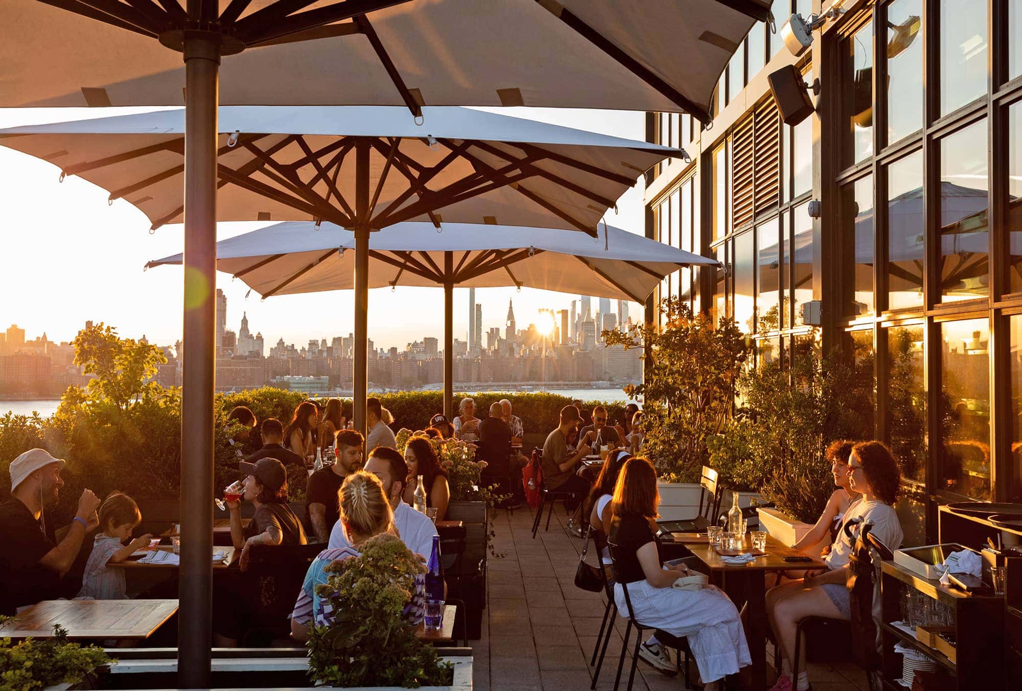If the words “hotel rooftop bar” evoke overpriced and forgettable drinks accompanied by a sound system so aggressive it limits conversation to smiles and hand gestures, this breezy, indoor-outdoor Williamsburg spot presents a strong counternarrative. The chicly midcentury interior has cozy nooks and booths that extend onto a roof deck with cushioned seats and raw wood tables overlooking the Manhattan skyline. The menu overdelivers on all fronts, with smoky tuna tartare and crispy Japanese fried chicken to pair with classic and creative cocktails like the Martini Blonde (coastal Italian gin, cucumber vodka, vermouth, lemon oil, and a housemade pickled onion). I’m especially fond of the by-the-glass wine list, which has everything from crowd-pleasing Finger Lakes Riesling, to Ameztoi’s fan-favorite rosé, to a crunchy, insider-y Grenache-Moscatel blend from Valle de Guadalupe, Mexico.