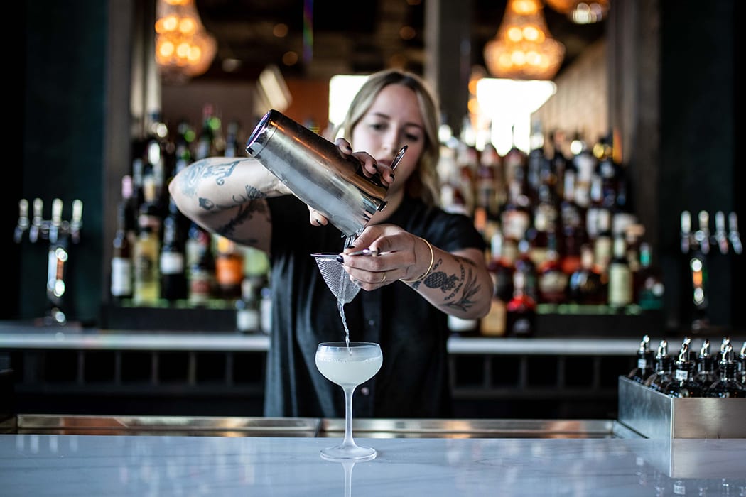 When designing the drinks menu, Buhler and bar manager Alex Jump (formerly of RiNo Yacht Club and Mercantile) took into account the fact that they’re located inside a hotel with visitors from many different cities. “While we will have many guests that are joining us specifically for the cocktails, we know that people are also here traveling for business, or with their families, so we want to make sure we have drinks that can appeal to them as well,” Buhler says.