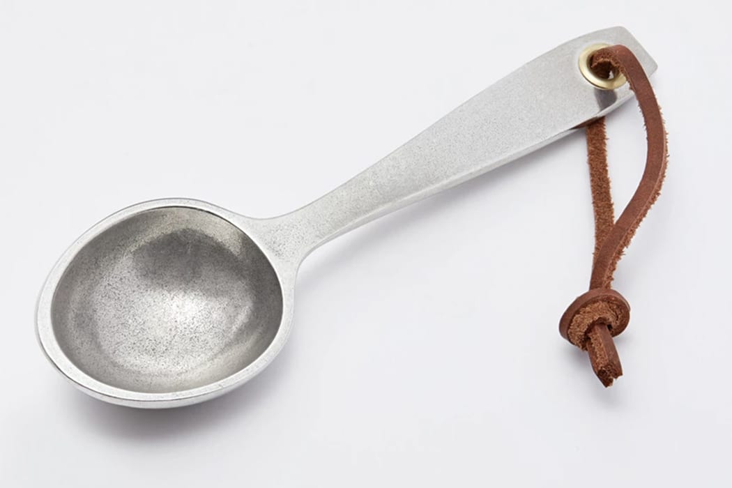 Pewter Coffee Scoop Measure out your grounds in style with this coffee scoop from Rhode Island maker Beehive Handmade. Featuring a lead-free pewter spoon and leather details, the one-tablespoon scoop carries a rustic simplicity. $36, beehivehandmade.com