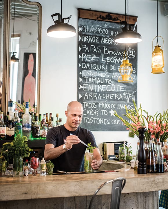 When we asked photographer Caleb Krivoshey to capture Havana drinking culture, he hit the ground running. Currently working on a photo series inspired by the vintage allure of Havana’s classic taxicabs, Krivoshey has traveled to Cuba on assignments for the past six years, and he’s a big fan of the city’s cocktail scene. “Lately, Havana has changed a lot, with the new possibility of opening private businesses, such as bars, and thus, many new places for cocktail-drinking have flourished,” he says. “The Imbibe feature was an opportunity to discover these new places, such as O’Reilly, El Del Frente, El Cocinero and Azucar, but also to drink and savor my favorites—El Floridita, La Guarida, Al Littoral, La Bodeguida del Medio—as well as to ramble in Old Havana to discover more hidden bars.”