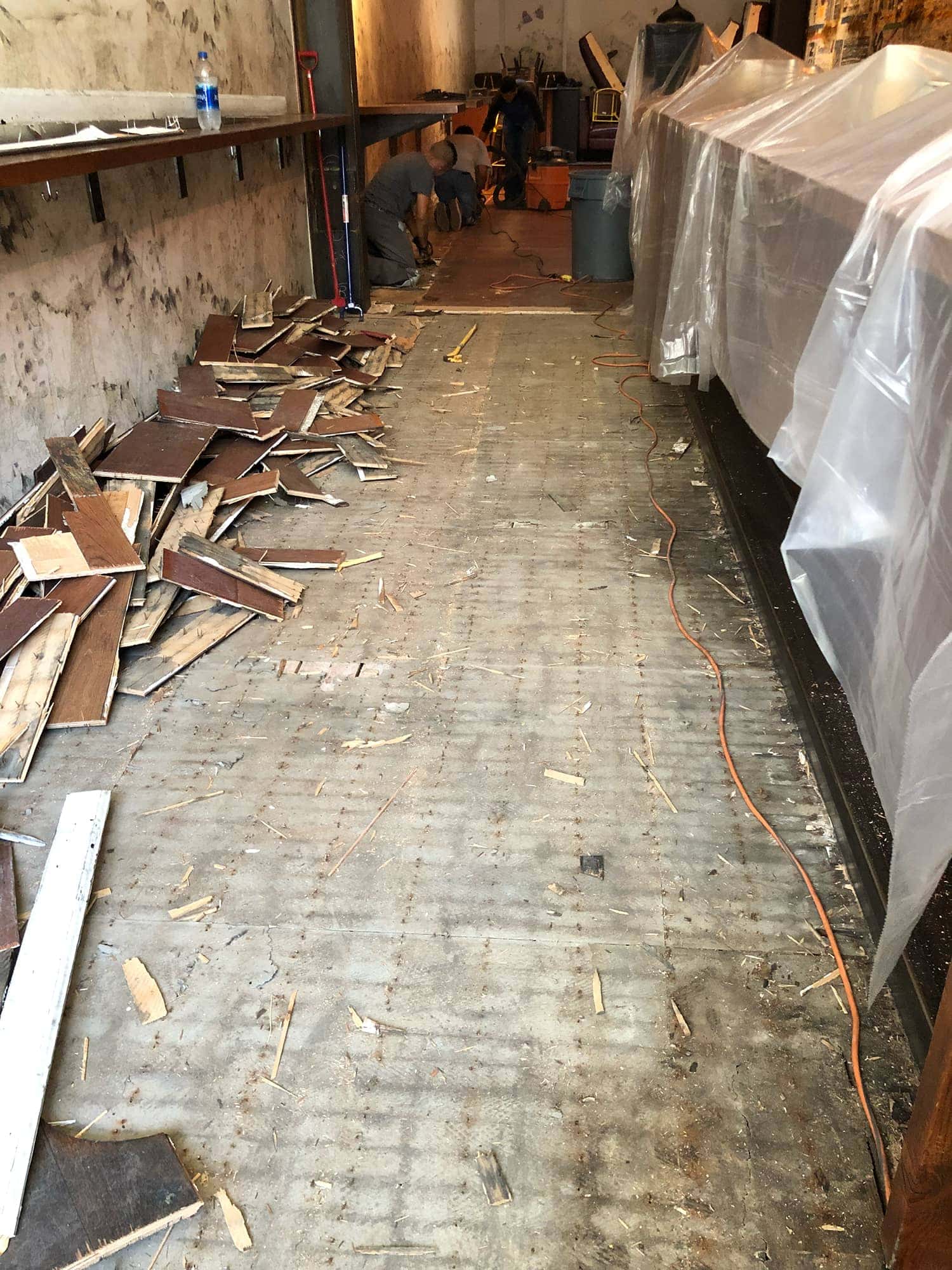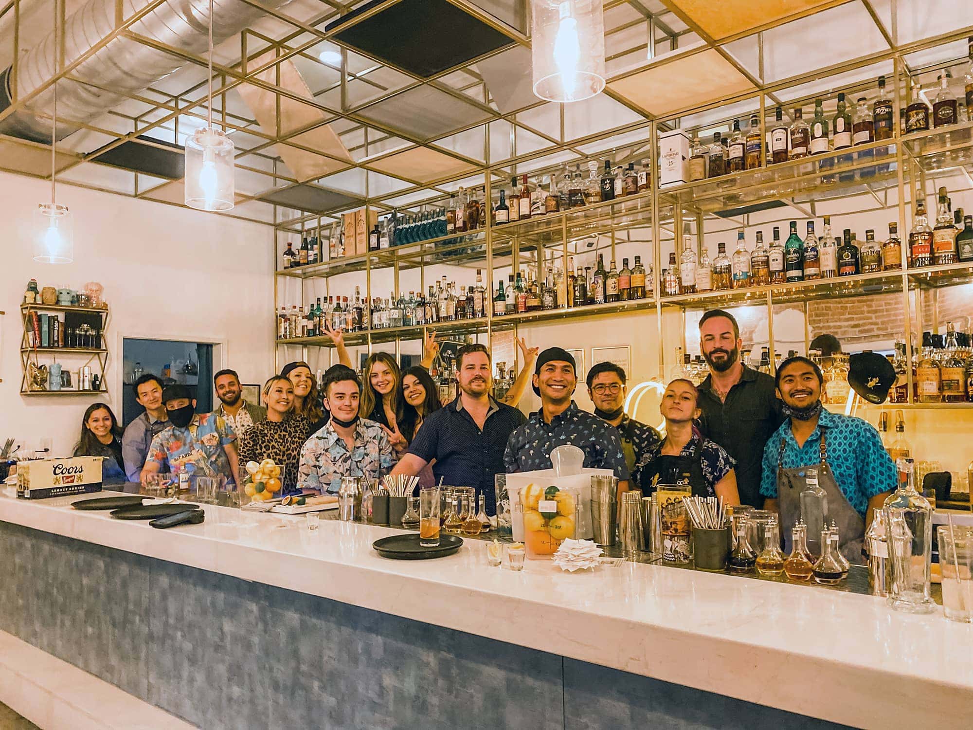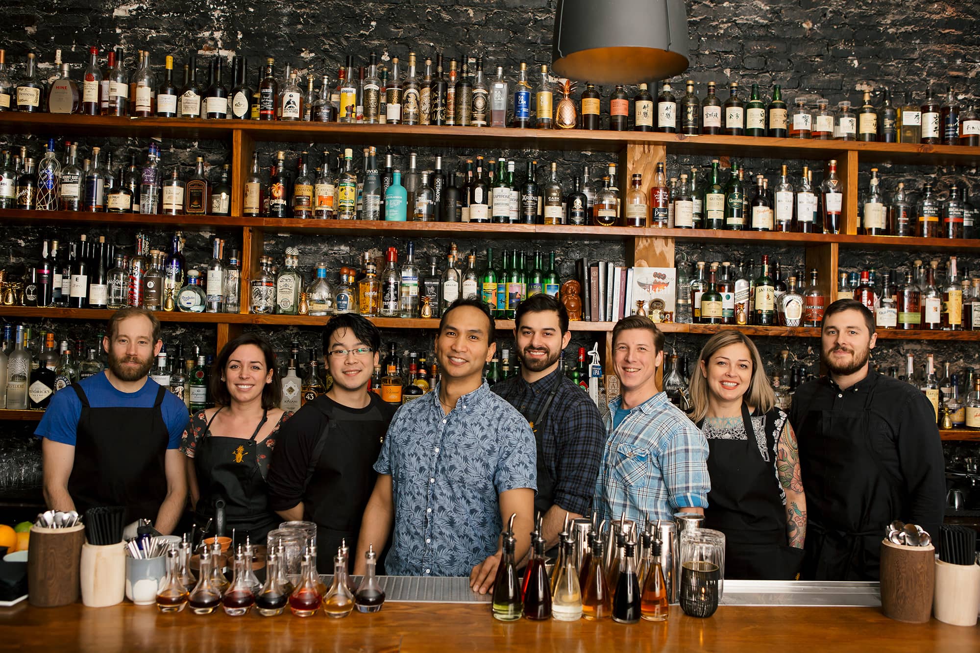 Because we didn’t have a lot of money, I did a lot of the demo myself. The team would close up, go home, and I would start demoing inside the bar—take the walls down, furniture out. The next day the team would show up around noon and help me clean up. We’d prep and set up the bar, and we’d operate again. It nearly killed me. The bar team that was with me—Francis Stansky, Garrett Horn, Jarrett Hendrick, and Adrian Wong—we were all working together every single day to try and open this bar and change it in way that felt like home for us.