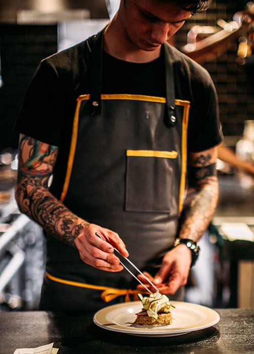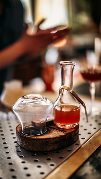 To adapt to the hotel setting, Polyoka also added a classics section of the menu to offer a few familiar options for guests in addition to house specials. But the goal is about more than just making great drinks; Polyoka also wants to have an impact on the local community. “I’m seeing more restaurateurs and bar owners thinking about how our industry can affect change in this world. Can a drink, in a hotel, do that? I think it can,” he says. “We cut out middlemen, support regional agriculture, buy from small distillers, give new spirits and beverages a platform to grow, all while delivering a meal our guests hopefully enjoy.”