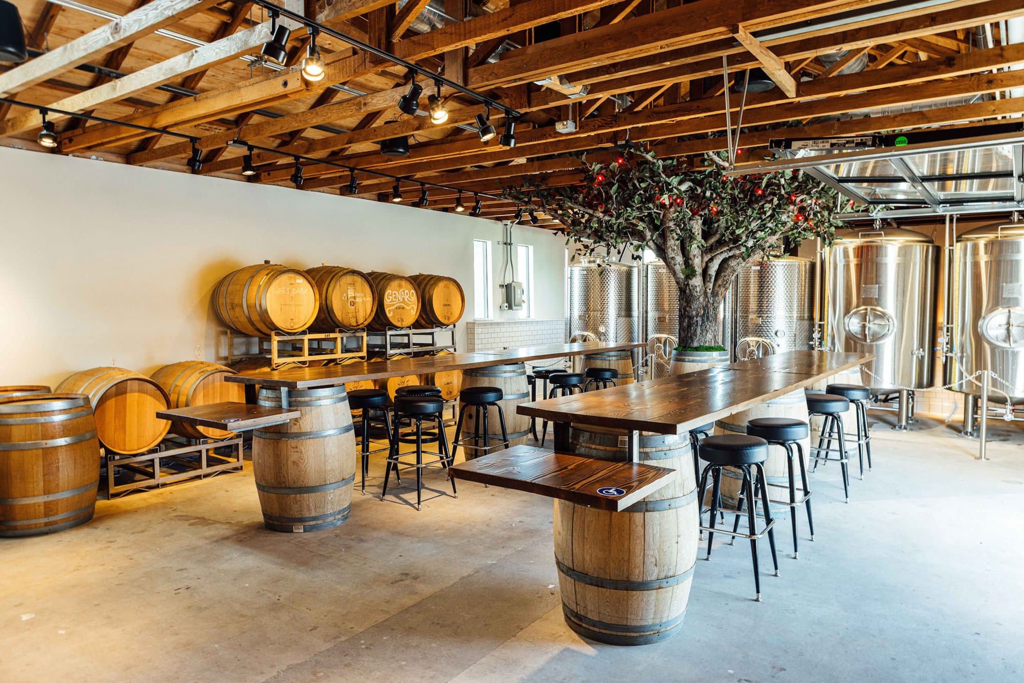 And while their combined experience in brewing has been notably long, the actual build of the facility took a year. A former contractor himself, Farber subcontracted especially bespoke features within the space. He had the cider house’s counters custom-built from 100-year-old Douglas Fir trees found at a mom-and-pop lumberyard, which uses wood from demolished homes. “It was just a treasure to find,” he says.