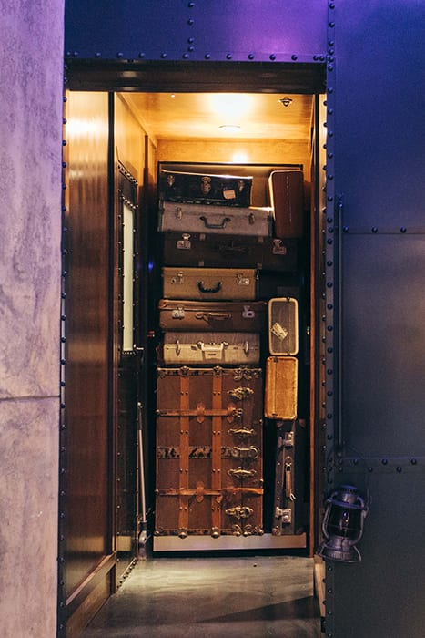Platform 18 occupies a custom-built replica of a presidential Pullman train car, where complimentary Champagne and truffles are served, and guests can choose from 46 original cocktails. Long and narrow, the room truly feels like a train car with rich wood paneled walls and fancy brass accents. In the windows, a 90-minute film loops through an actual train ride shot on the Silverton line through the Rocky Mountains of Colorado, creating the feeling that you’re watching the snowy landscape scene pass “outside” as you drink. “You actually feel like you’re on a train going somewhere,” says Furnari. “People walk in, and they have to grab the rail on top of the chair to get their bearings because every single element in that room causes you to feel movement in your gut.”
