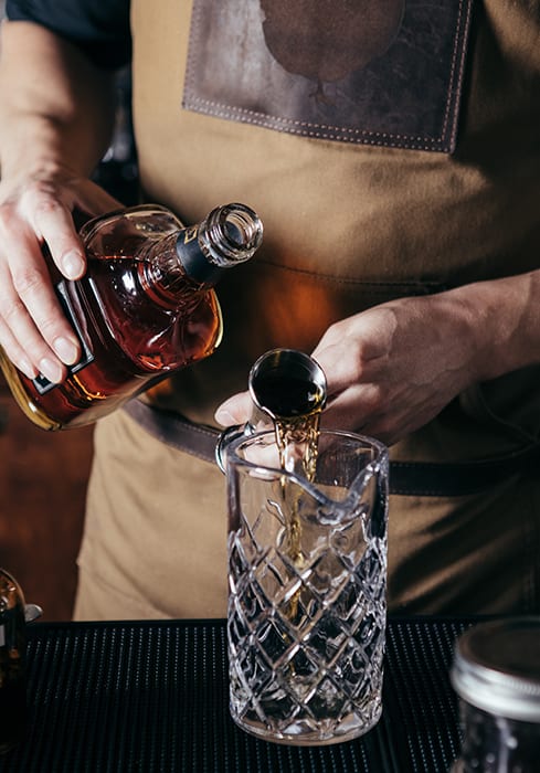 The final space, called Grey Hen, is a 16-seat cocktail bar and bottle shop featuring 80 single barrel selections from around the country. “We’re trying to bring the experience of tasting and picking out bottles of whiskey in Kentucky to Phoenix,” says Asher. “Obviously we can’t bring an entire distillery, but we have over 500 selections of whiskey and all the single barrels, so I think we’ve really captured what it feels like to be there.” With a more modest wood-driven decor and stately ambiance, the understated room puts the focus on the spirit without distraction. “One thing we really want to capture is the smell of when you’re in the distillery. That’s the final piece of the puzzle to sell the shop as transportive.”
