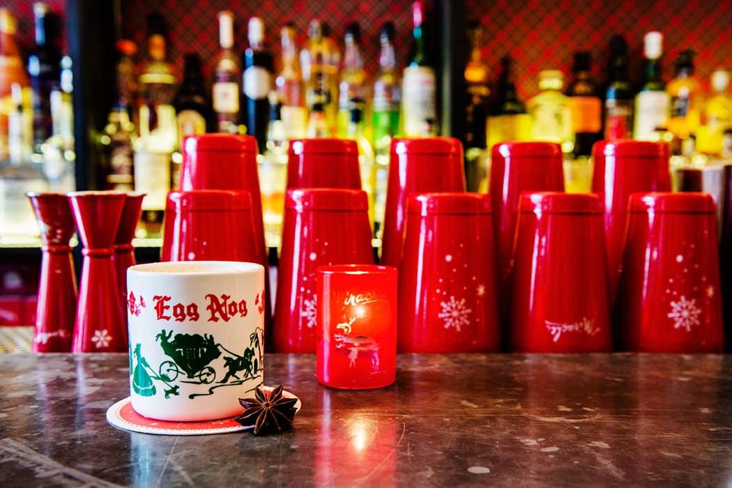 As Miracle evolved, Kaczorowski and her team formalized the participation process for bars with a set of brand guidelines and printed and digital materials to create continuity between locations. With these guidelines in mind, each bar orchestrates and pays for their own decorations, and Cocktail Kingdom has started offering a few custom items in addition to the Miracle glassware they produce (though the bars are responsible for those purchases as well). “We’ve always purchased our decor at discount stores where available, and we suggest partners do the same,” Kaczorowski says. “The beauty of the concept was that it wasn’t expensive, and the dollar store decorations allowed for extra-saturation without being too precious. It’s the all-over sensory experience that makes it feel different from just a bar decorated for the holidays. It has to be in-your-face. “