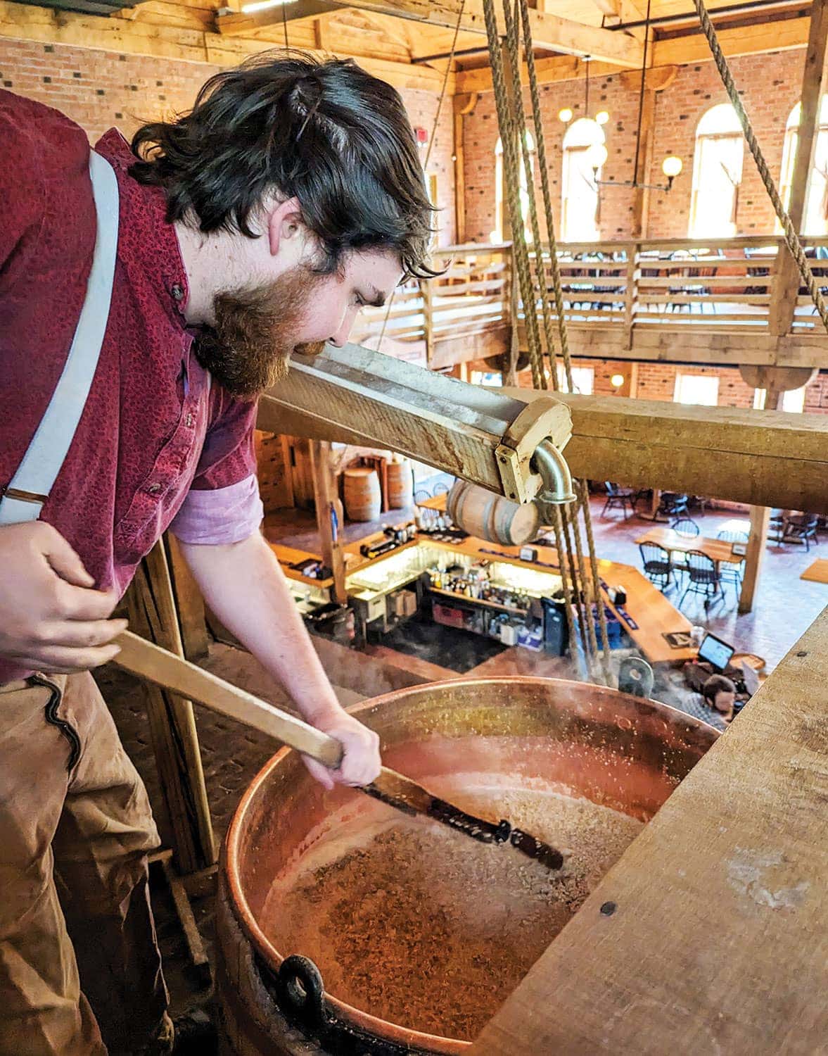 “These misconceptions that historic beer had to be sour and gross and super-high alcohol aren’t true,”says former head brewer Dan Lauro, a professional trained historian. Each batch of beer, which takes around seven to eight hours to produce, yields just 45 gallons of finished beer. The historical ales are so limited that they’re primarily sold in the taproom, where the ambiance is another ingredient. “The environment dictates the way you view and enjoy your beer,” Lauro says. “You can smell the fire, see us splitting wood and the sweat on our brow.”