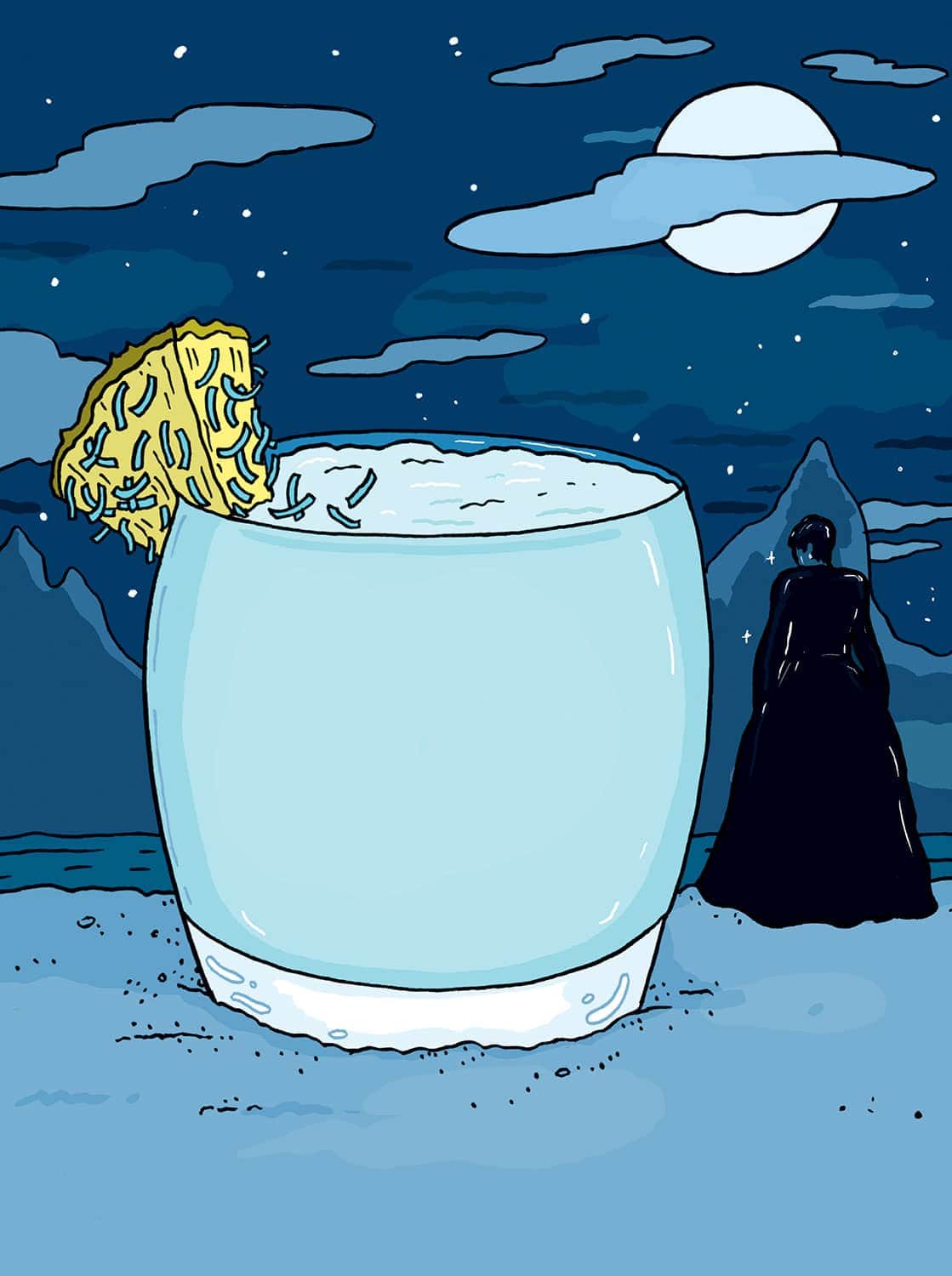 Well, the drink itself is really delicious, but a good allegory for the way the book came together is the Melrose Place cocktail. I loved that show and I was weirdly allowed to watch it when I was like 12. So I was looking into it, and I found out that there was this very highbrow art project that was woven into the set design, where a conceptual artist planted subversive props into the scenes that weren’t acknowledged by the characters. For instance, there was a character who had a blanket with the chemical structure for RU-486 on it, and in the scene the character is talking about getting an abortion. Heather Locklear’s character also takes on the museum that is sponsoring the project as a client on the show, so it became this meta-cyclical thing, where this secret art project was in the show and then the show overtly incorporated the museum as part of the plot without acknowledging the artwork. It seemed like a very ’90s thing, where the internet was starting to become more of a thing and pop culture became more meta-textual. It was emblematic of how pivotal the decade was, where it was still kind of old-school with network TV, but it couldn’t have been done in the ’80s, and presages the way we consume media now. In the show, her ad agency is called D&D, so I made a Dark ‘n’ Stormy riff but it’s the “Dark & Datey” with date-infused rum. It goes beyond just saying, “Hey, remember Melrose Place?” into this element that not as many people were aware of.