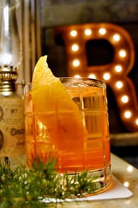 A splash of fresh orange juice and a hint of turmeric add an exotic zing of flavor to this Negroni-inspired cocktail.