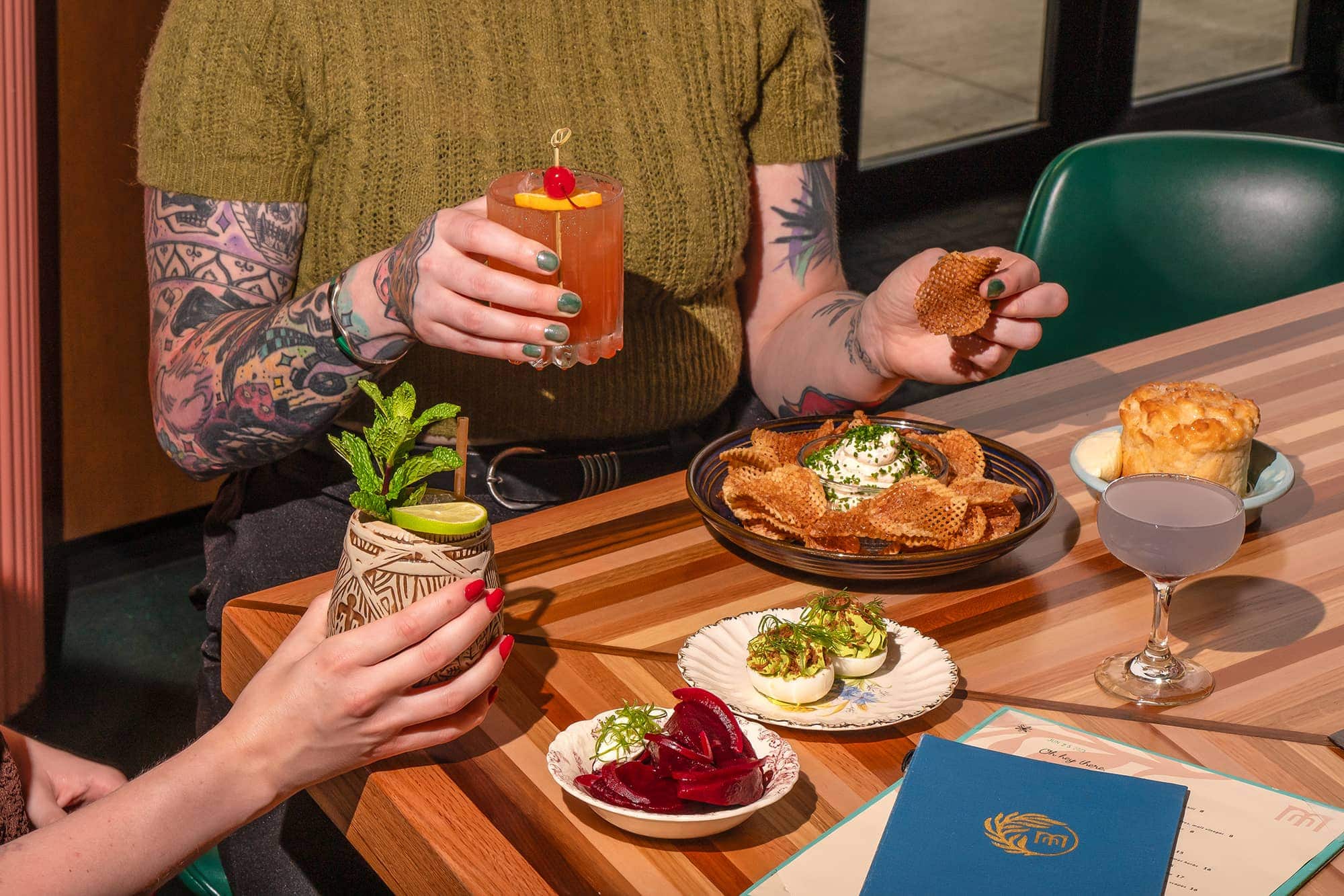 Also opened in the fall by another pair of longtime industry vets, Adiõs is the passion project of José Medina Camacho (formerly of Automatic) and Jesús Méndez. The bar pulls both flavors and design elements from the owners’ native Mexico, from drinks like the Miel de Maguey (tequila, raicilla, two dry vermouth, celery bitters, saline) to artwork by modern Mexican artists. “Their Camazotz Oaxacan Daiquiri made with Huana (soursop) liqueur is my favorite, but they also have great nonalcoholic options made with items like house-made tepache,” says LeNell. “An ofrenda stands in the corner year-round, so if you are grieving a lost loved one, you can leave a memento or photo.”