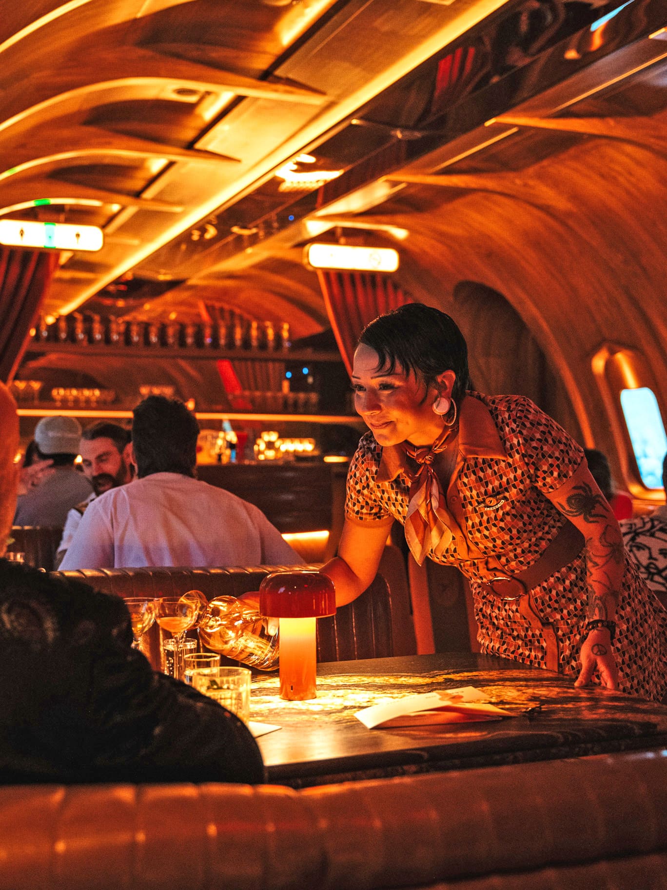 Jump on a first-class flight in this 1970s airplane-themed cocktail bar in downtown Phoenix. Carry On takes its bar-goers back to the days when flying was a luxurious experience, complete with plenty of legroom, a cocktail bar cart, and a view out the portholes (think: the train ride in Century Grand). In one 90-minute sitting, you depart from Phoenix, enjoy classic cocktails and in-flight snacks, navigate through thunderstorms and flying penguins, and then touch down in some far-off destination. The destination colors the cocktail menu, such as a G&T with white wine for San Francisco and a mezcal Negroni for Mexico City. For those looking for an even more premium experience, the bar offers the Captain’s Club boarding pass with a welcome cocktail and snacks, three cocktails, and a four-course light bite menu.