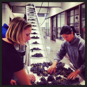 For many West Coast winemakers, harvest 2013 is officially underway. And last night we stopped by our Imbibe 75 Wine Bar of the Year, the SE Wine Collective, to see how things are shaping up so far. With five wineries under one roof, the Collective has created a new model for urban winemaking, and yesterday vintner Anne Hubatch of Helioterra Wines was busy sorting the first fruit of the season. Eager to get our hands dirty, we jumped on in.